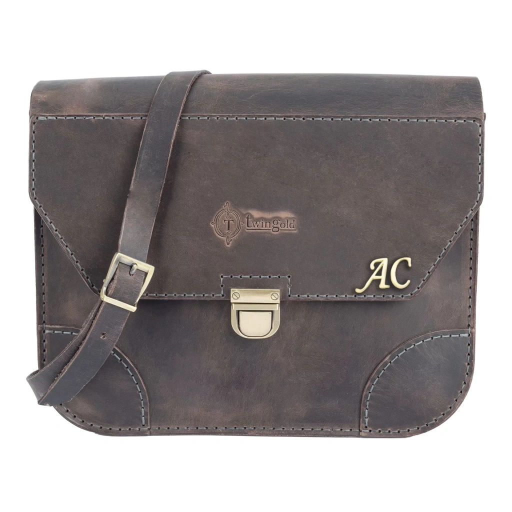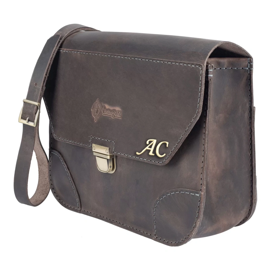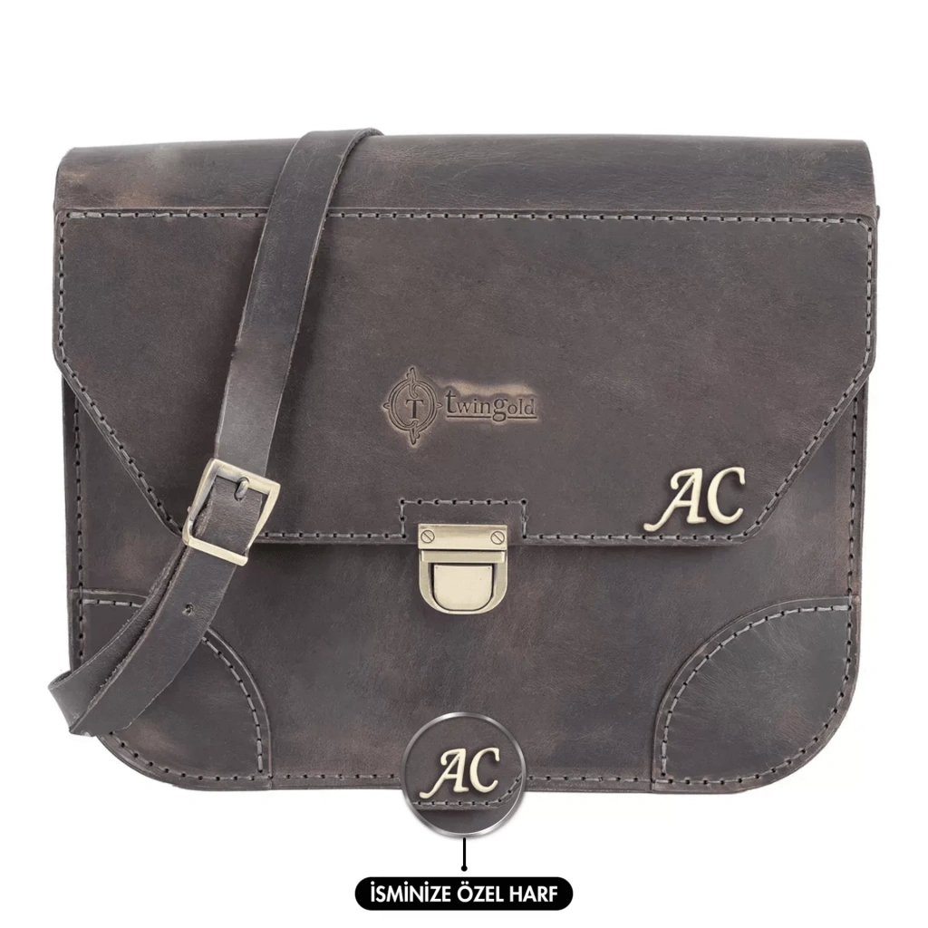 İsme Özel Günlük Orta Boy Omuz Çantası - %100 Crazy Deri - AC03002 - Antrasit