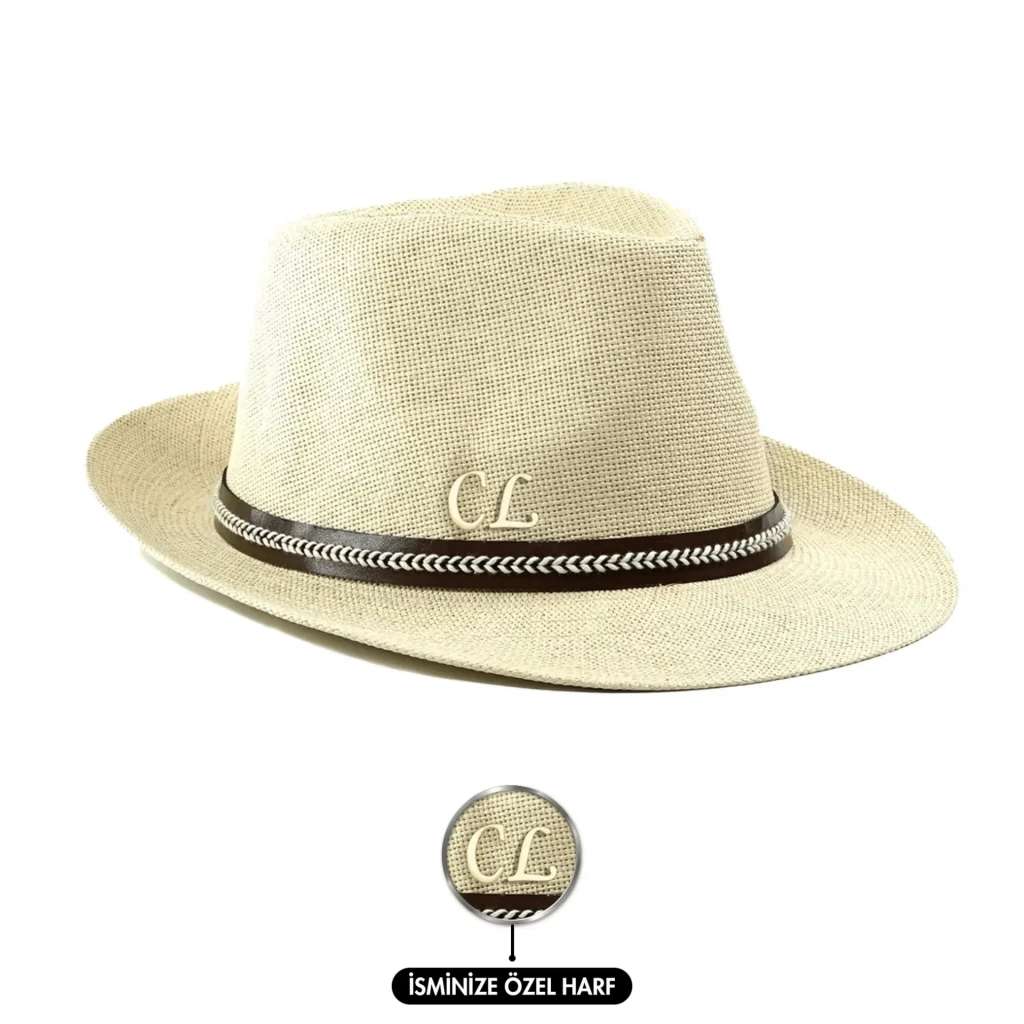 İsme Özel Hasır Fötr Şapka - AB01006 - Bej