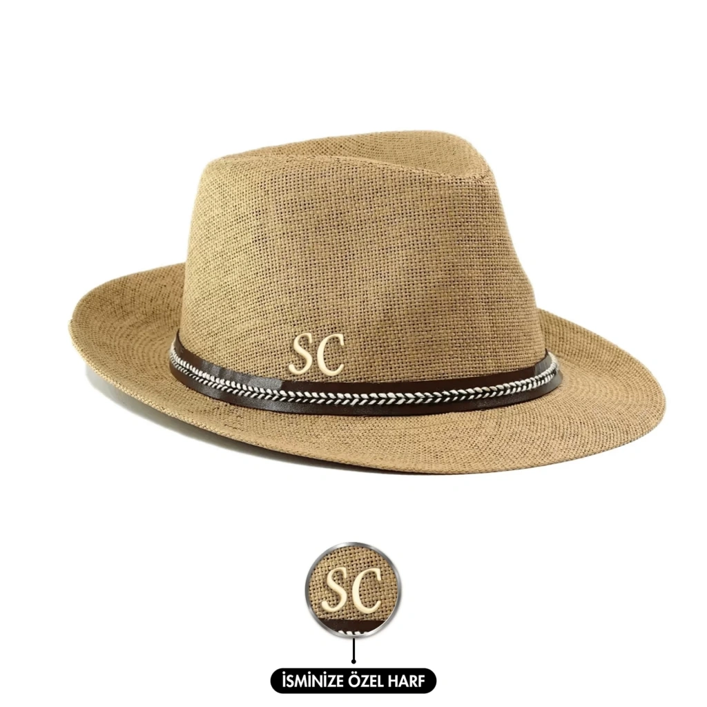 İsme Özel Hasır Fötr Şapka - AB01006 - Camel