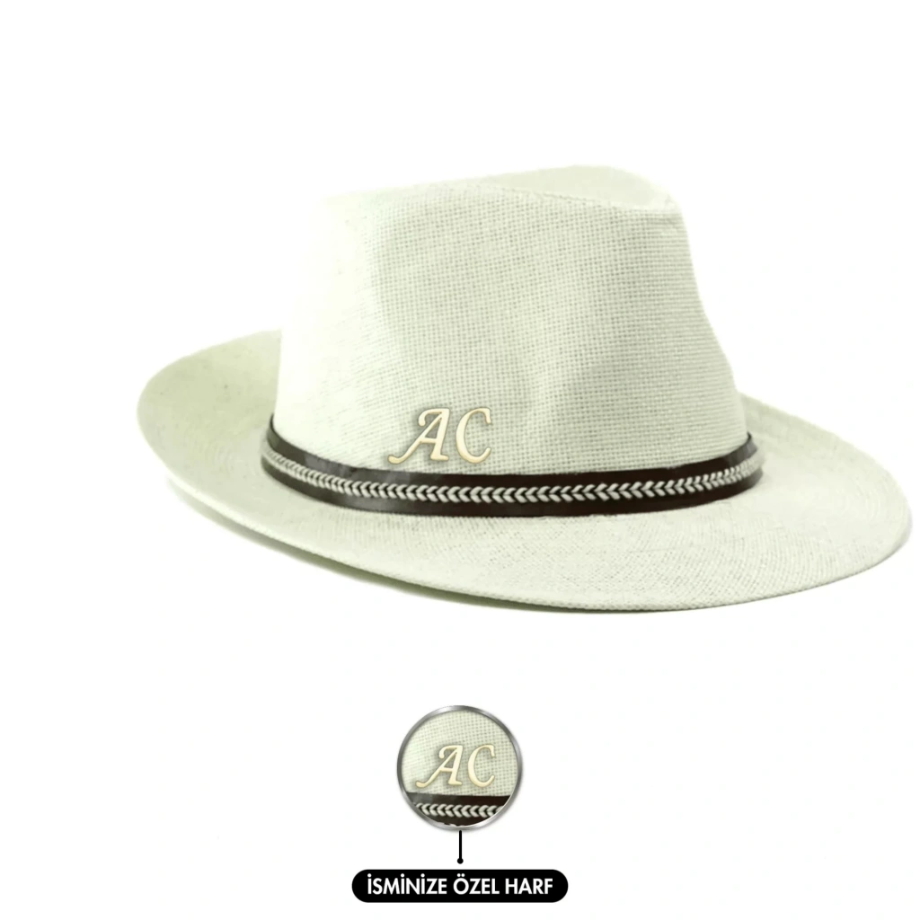 İsme Özel Hasır Fötr Şapka - AB01006 - Ekru