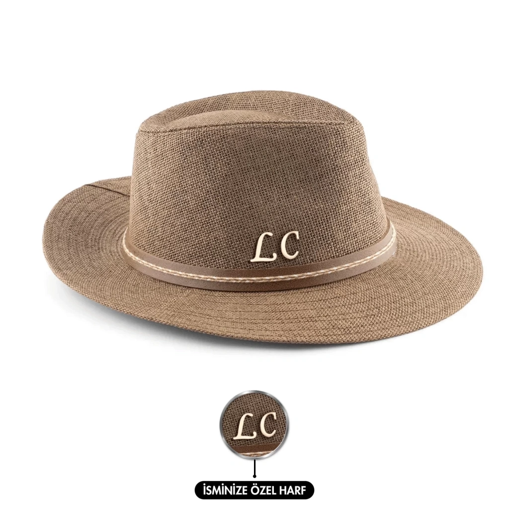 İsme Özel Hasır Fötr Şapka - AB01006 - Kahverengi