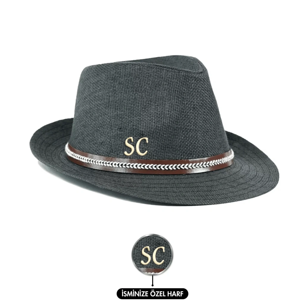 İsme Özel Hasır Fötr Şapka - AB01006 - Siyah