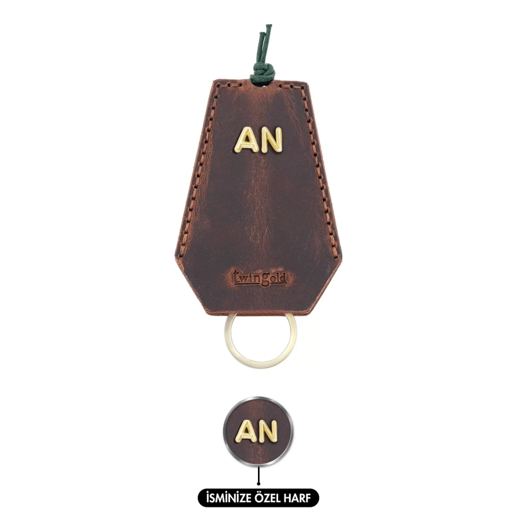İsme Özel İpli Anahtarlık - % 100 Crazy Deri - AG01002 - Kahverengi
