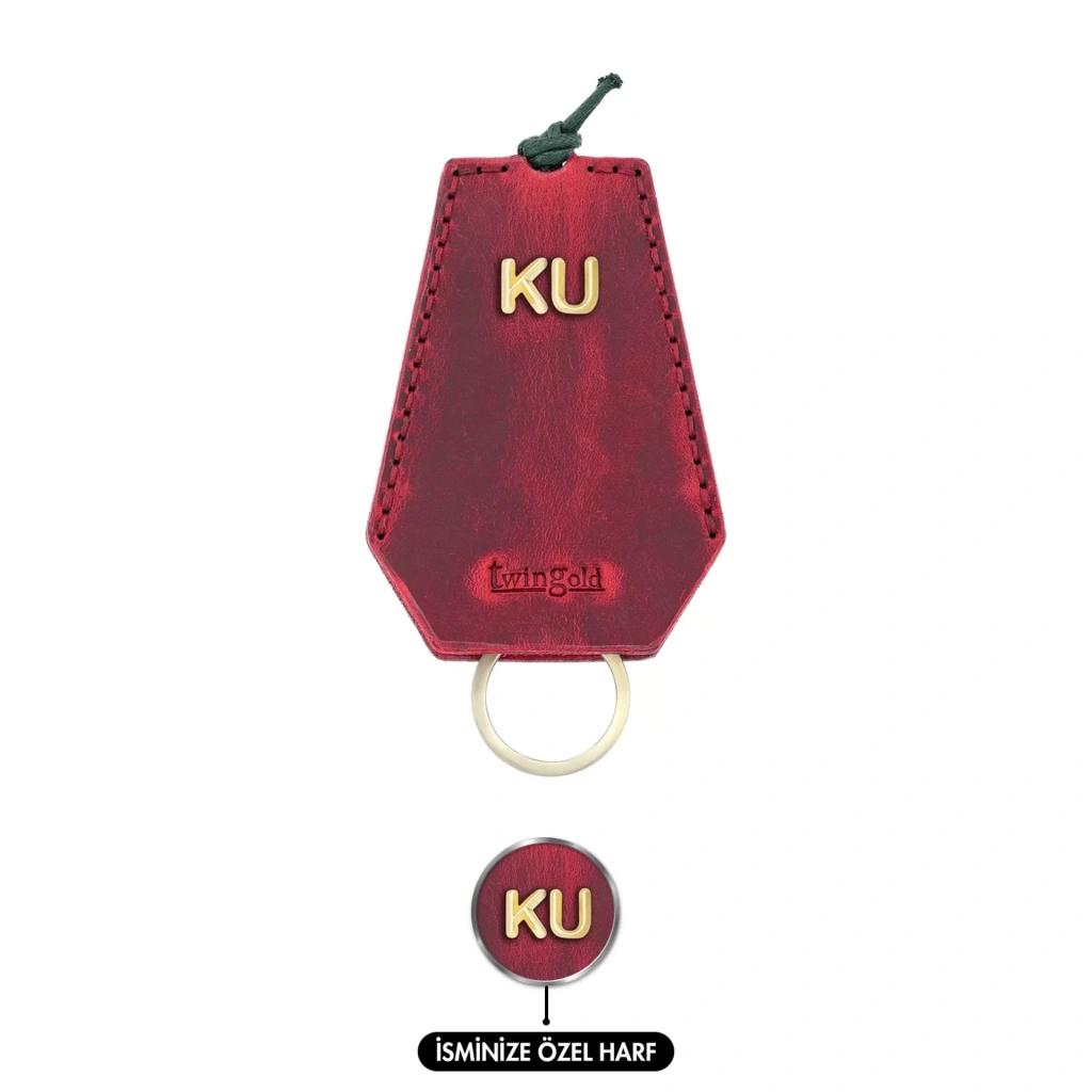 İsme Özel İpli Anahtarlık - % 100 Crazy Deri - AG01002 - Kırmızı