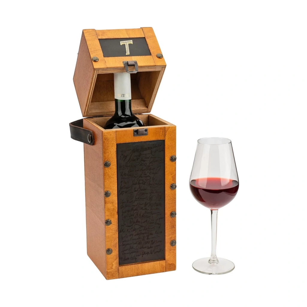 İsme Özel Kare Kapaklı Tekli Şaraplık - HH06001 - Bordo