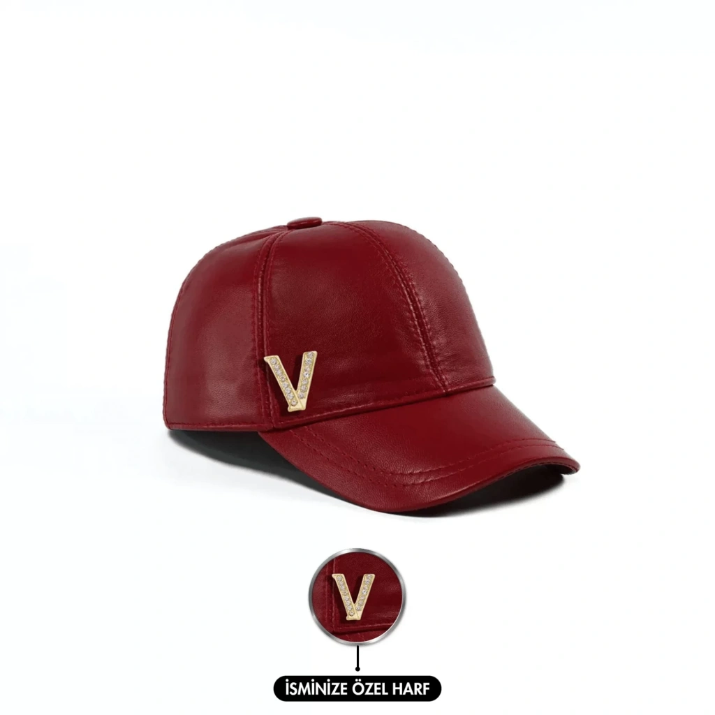 İsme Özel Kep Şapka - %100 Deri - AB01012 - Kırmızı