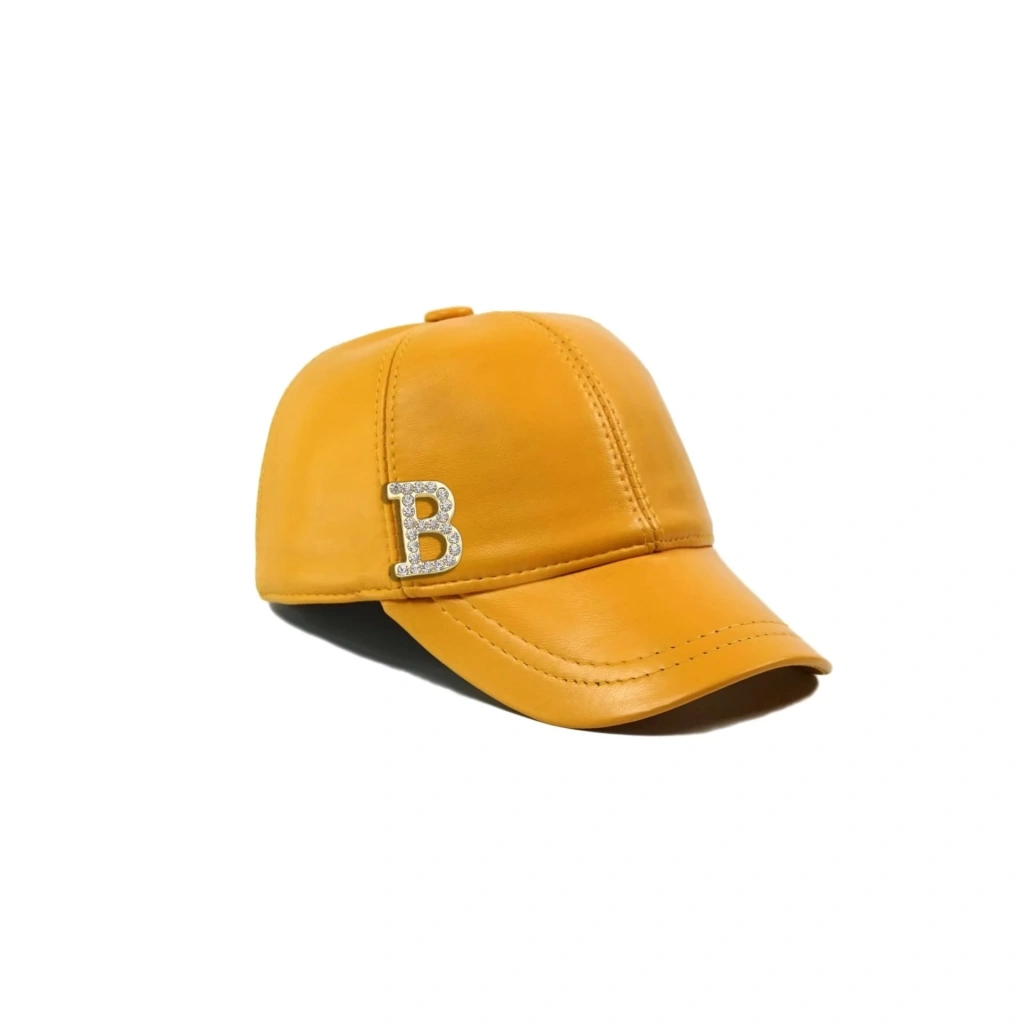 İsme Özel Kep Şapka - %100 Deri - AB01012 - Sarı