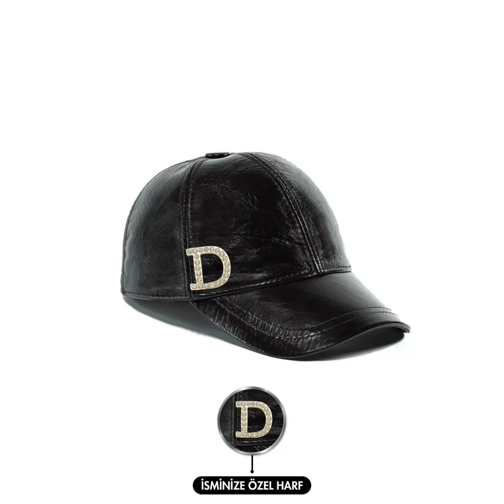 İsme Özel Kep Şapka - %100 Deri - AB01012 - Siyah