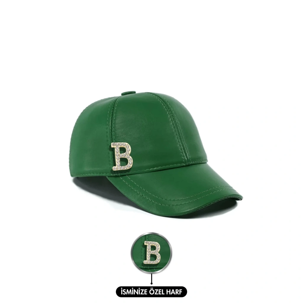 İsme Özel Kep Şapka - %100 Deri - AB01012 - Yeşil