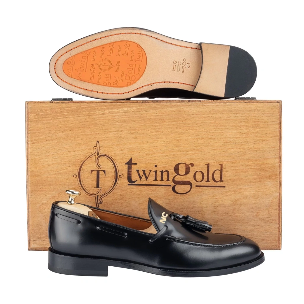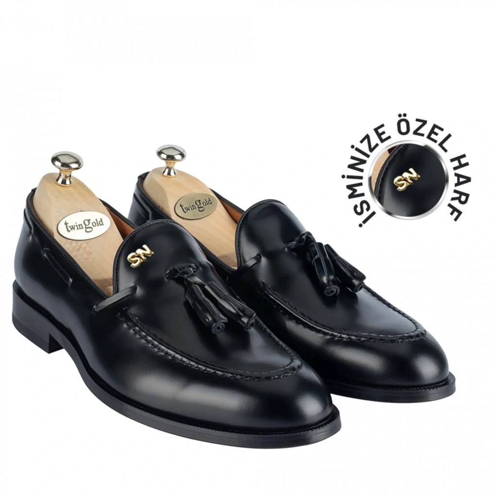 İsme Özel Loafer Erkek Ayakkabı - %100 Hakiki Açma Deri - Altın Harf - AA01003 - Siyah