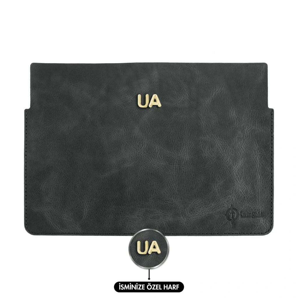İsme Özel Macbook Kılıfı - %100 Rainbow Deri - ET02002 - Antrasit