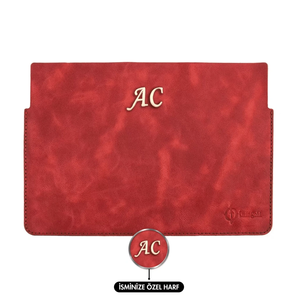 İsme Özel Macbook Kılıfı - %100 Rainbow Deri - ET02002 - Kırmızı