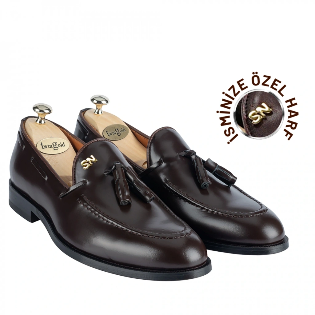 İsme Özel Loafer Erkek Ayakkabı - %100 Hakiki Açma Deri - Altın Harf - AA01003 - Siyah