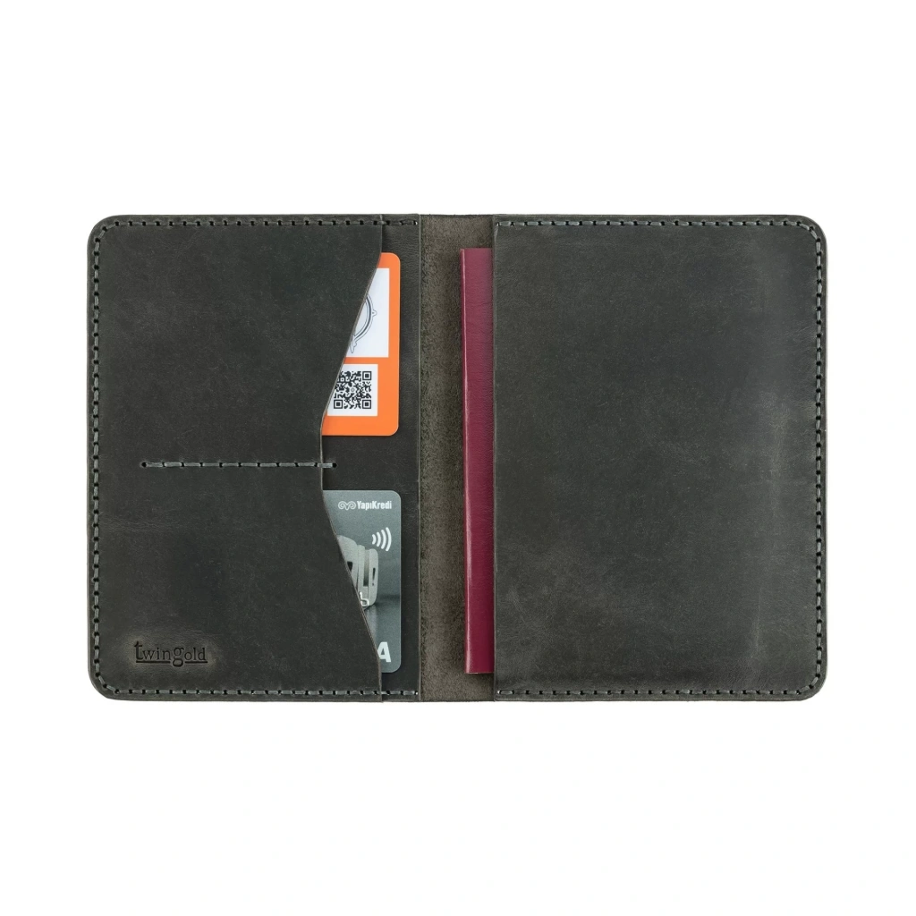 İsme Özel Pasaport Kılıfı - %100 Crazy Deri - AK02002 - Antrasit