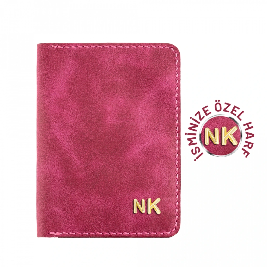 İsme Özel Pasaport Kılıfı - %100 Rainbow Deri - AK02003 - Fuşya