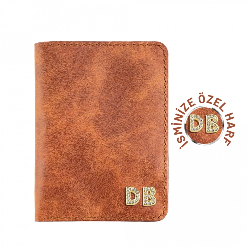 İsme Özel Pasaport Kılıfı - %100 Rainbow Deri - AK02003 - Tobacco