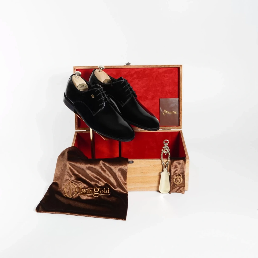 Altın harfli ayakkabılarımız ahşap kutusunda, meşe kalıp, pirinç çekecek, altın sertifikası ve toz torbasıyla birlikte gönderilmektedir.