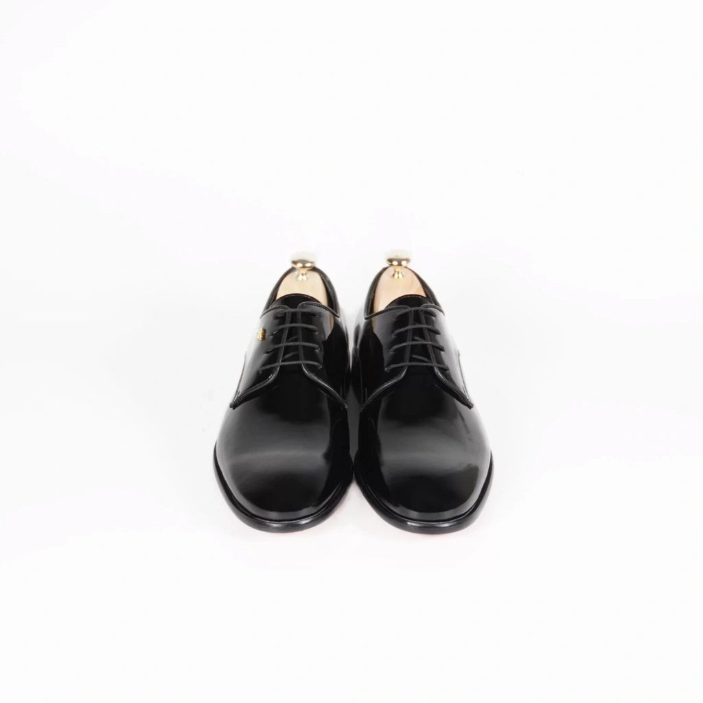 İsme Özel Rugan Bağcıklı Kösele Erkek Ayakkabı - %100 Hakiki Deri - Altın Harf - AA01006 - Siyah