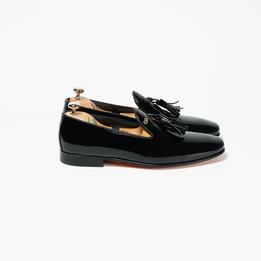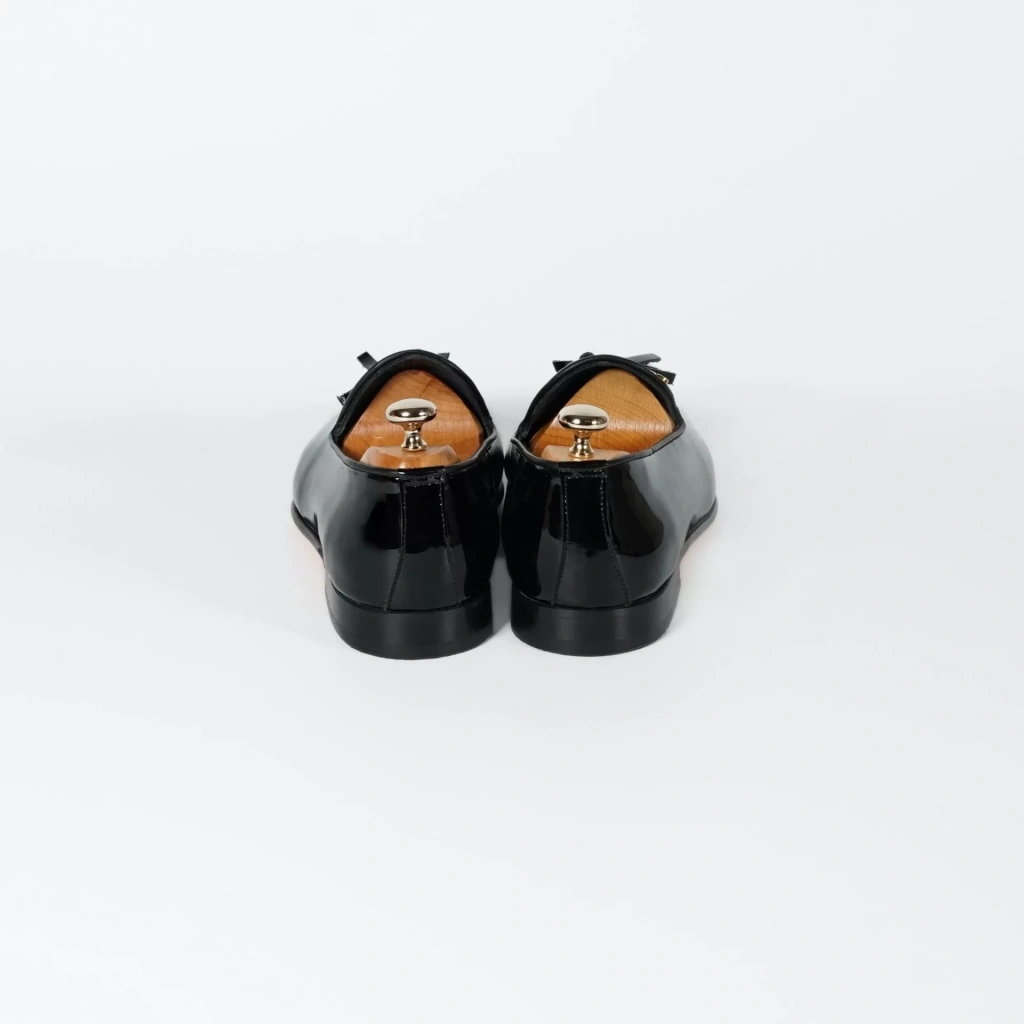 İsme Özel Rugan Püsküllü Kösele Erkek Ayakkabı - %100 Hakiki Deri - Gümüş Konseptli - AA01015 - Siyah