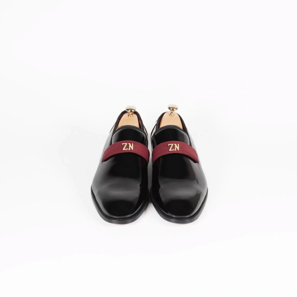 İsme Özel Smokin Salon Erkek Ayakkabısı - %100 Hakiki Deri - Altın Harf - AA01005 - Bordo