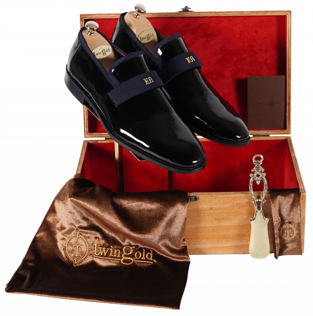 İsme Özel Smokin Salon Erkek Ayakkabısı - %100 Hakiki Deri - Altın Harf - AA01005 - Lacivert