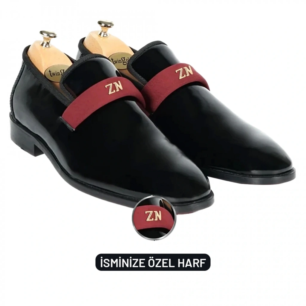 İsme Özel Smokin Salon Erkek Ayakkabısı - %100 Hakiki Deri - Altın Harf - AA01005 - Bordo