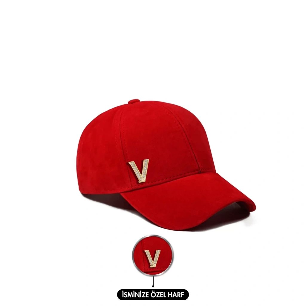 İsme Özel Süet Kep Şapka - AB01013 - Kırmızı