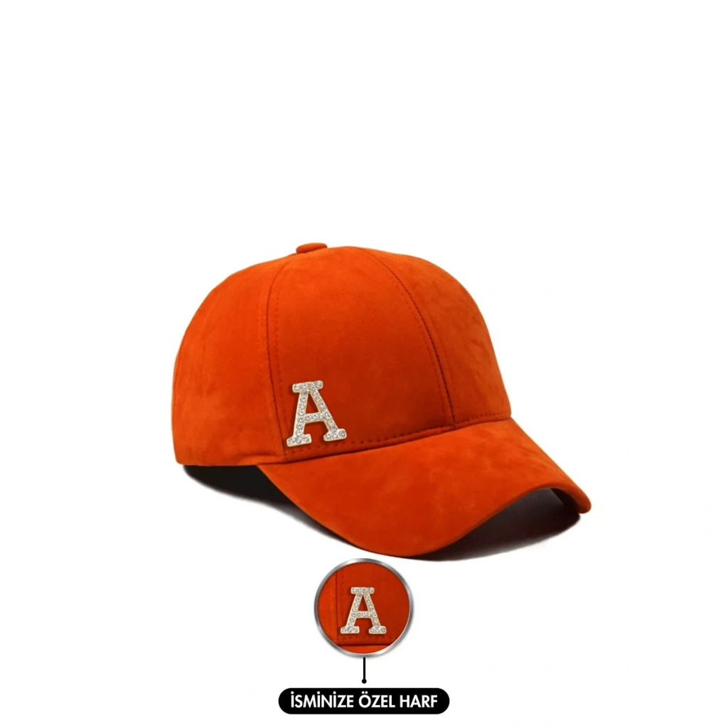 İsme Özel Süet Kep Şapka - AB01013 - Turuncu