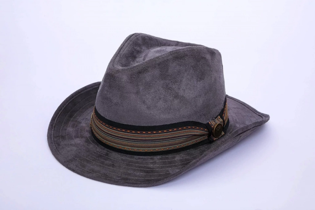 İsme Özel Süet Kovboy Fötr Şapka - AB01007 - Gri