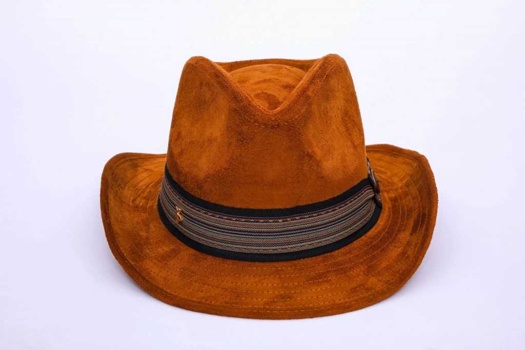 İsme Özel Süet Kovboy Fötr Şapka - AB01007 - Taba