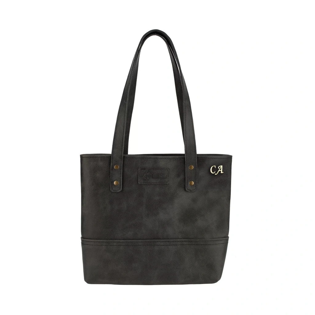 İsme Özel Tote Bag El Omuz Çantası - %100 Rainbow Deri - AC03003 - Antrasit