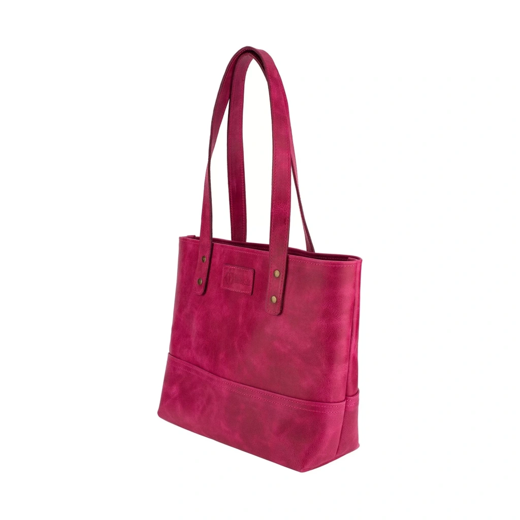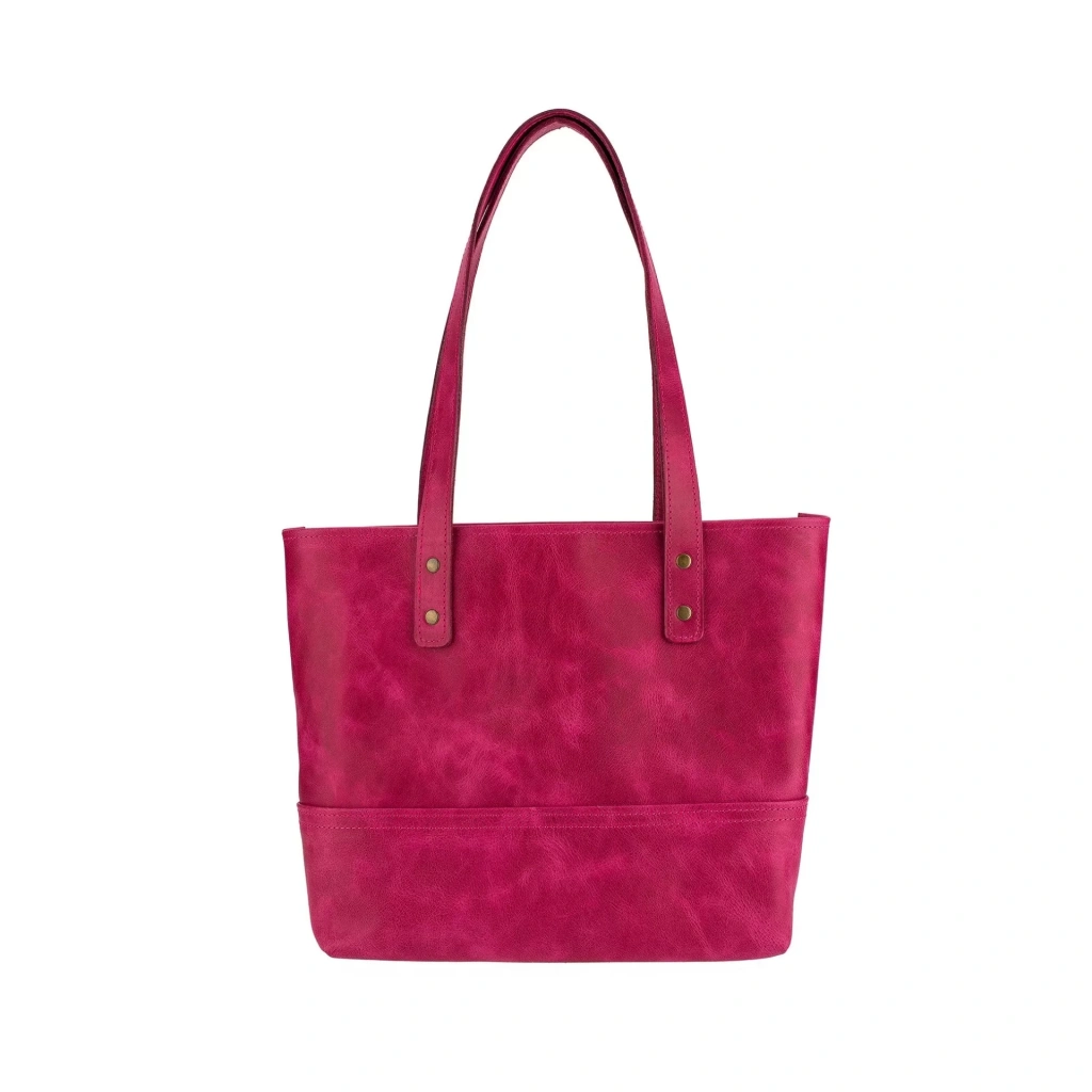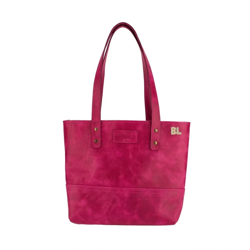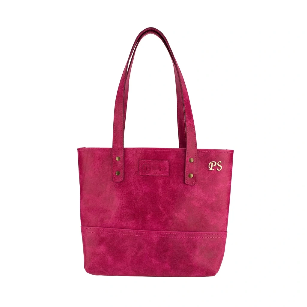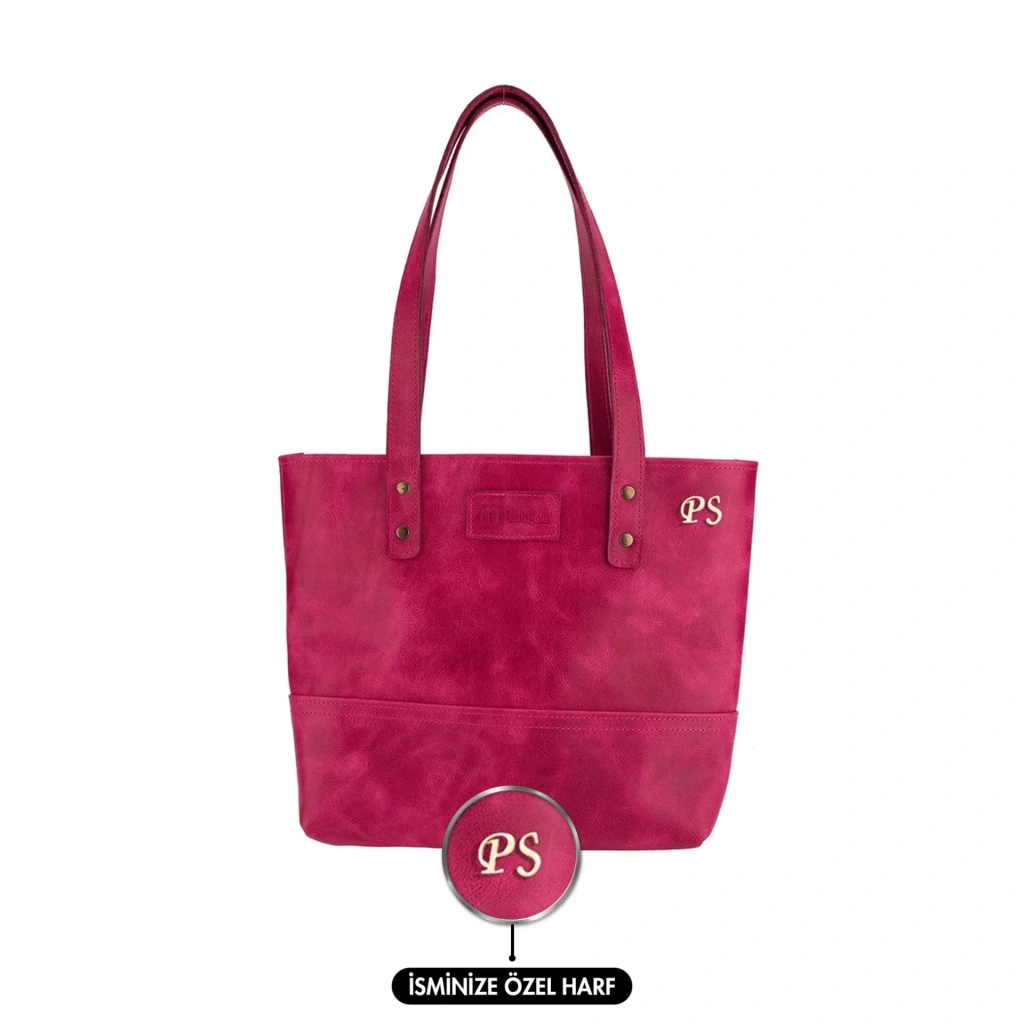 İsme Özel Tote Bag El Omuz Çantası - %100 Rainbow Deri - AC03003 - Fuşya