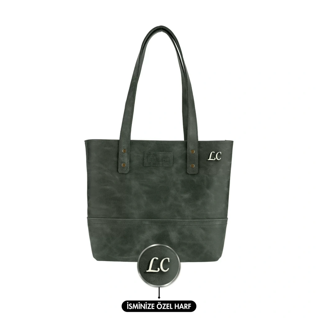 İsme Özel Tote Bag El Omuz Çantası - %100 Rainbow Deri - AC03003 - Haki