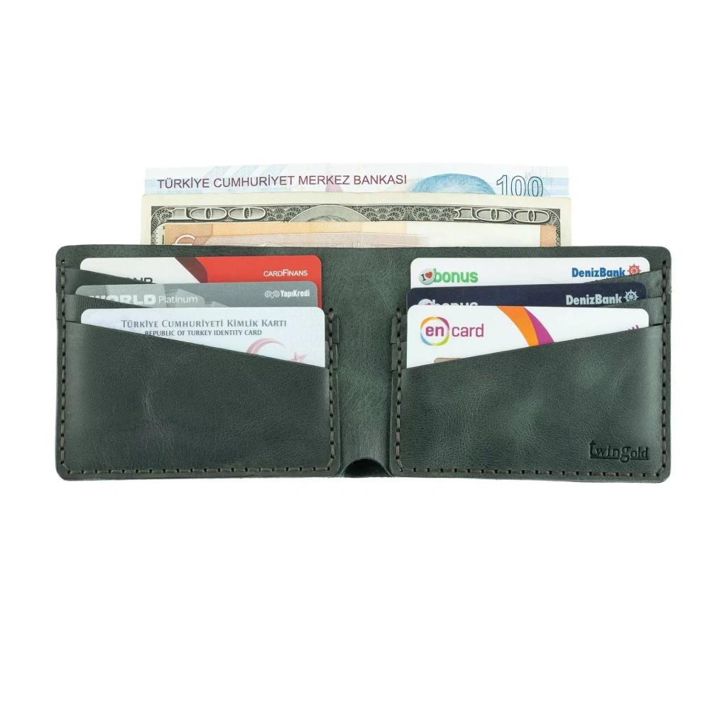 İsme Özel Yatay Klasik Cüzdan - %100 Rainbow Deri - A010001 - Haki