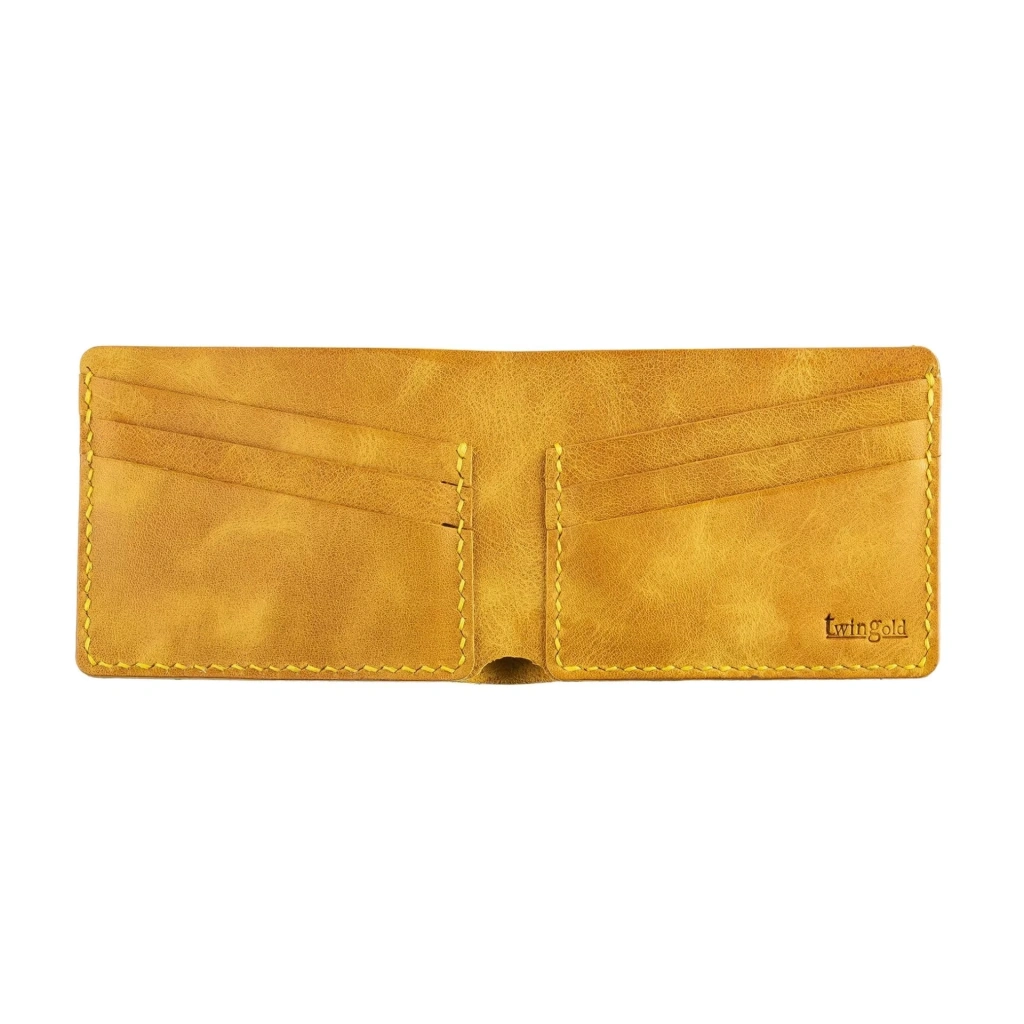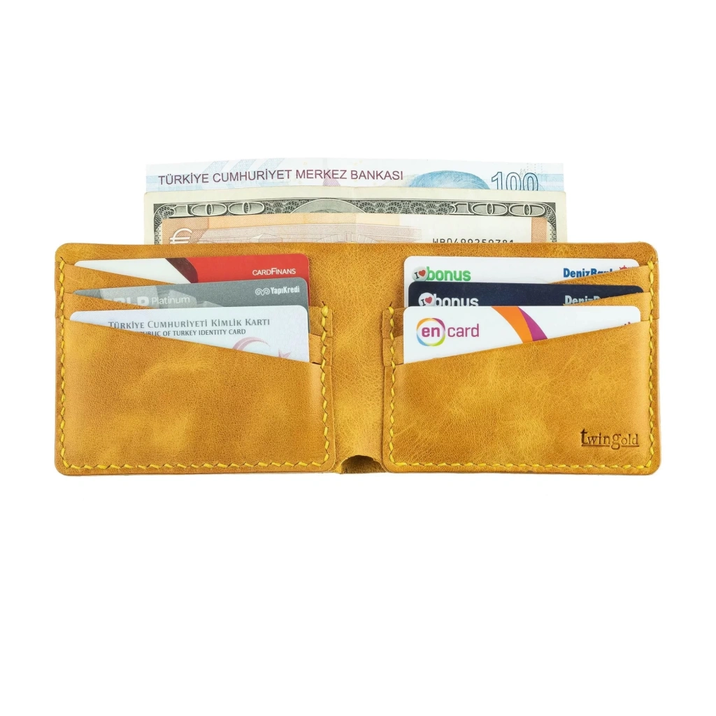 İsme Özel Yatay Klasik Cüzdan - %100 Rainbow Deri - A010001 - Hardal Sarısı