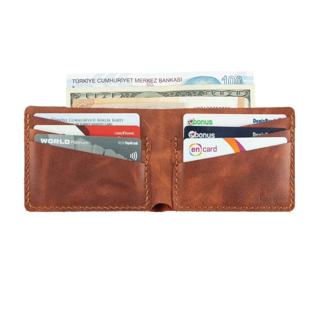İsme Özel Yatay Klasik Cüzdan - %100 Rainbow Deri - A010001 - Tobacco