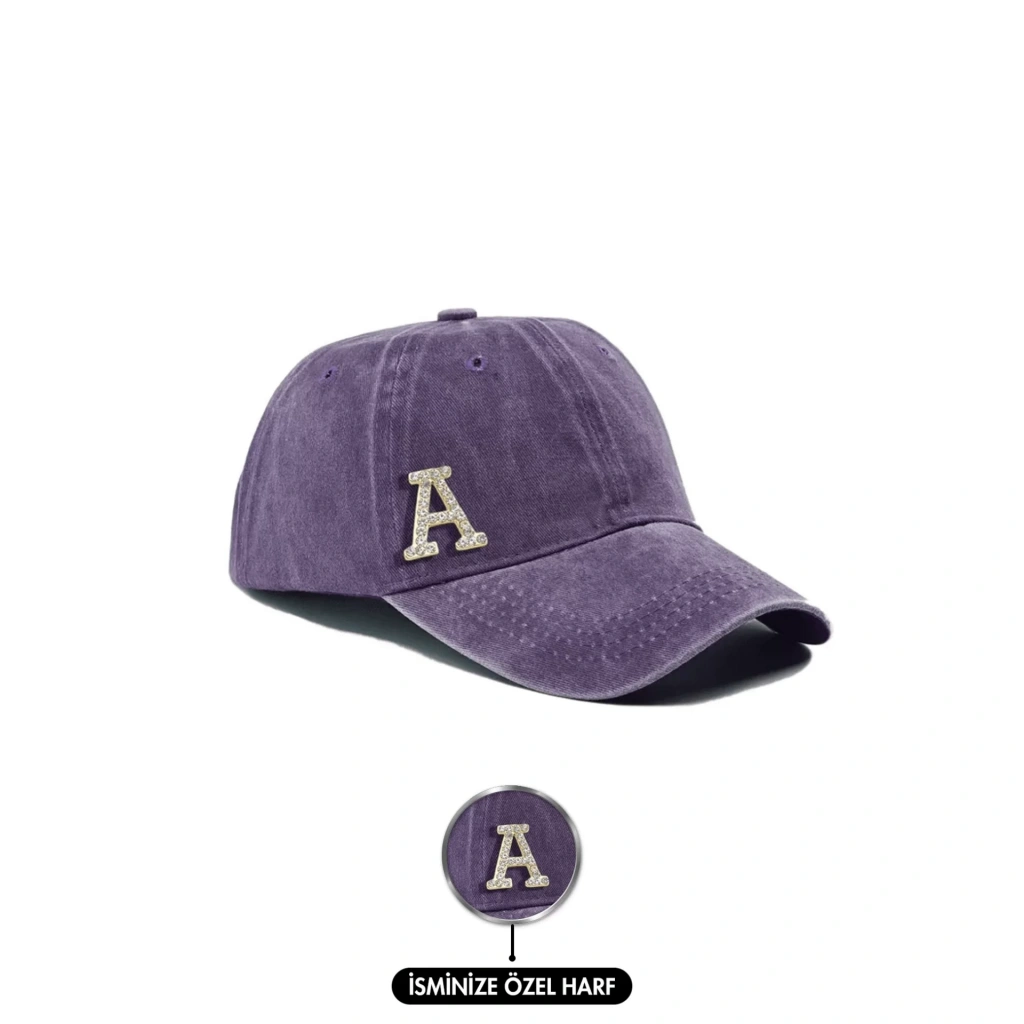 İsme Özel Yıkamalı Kep Şapka - AB01010 - Mor