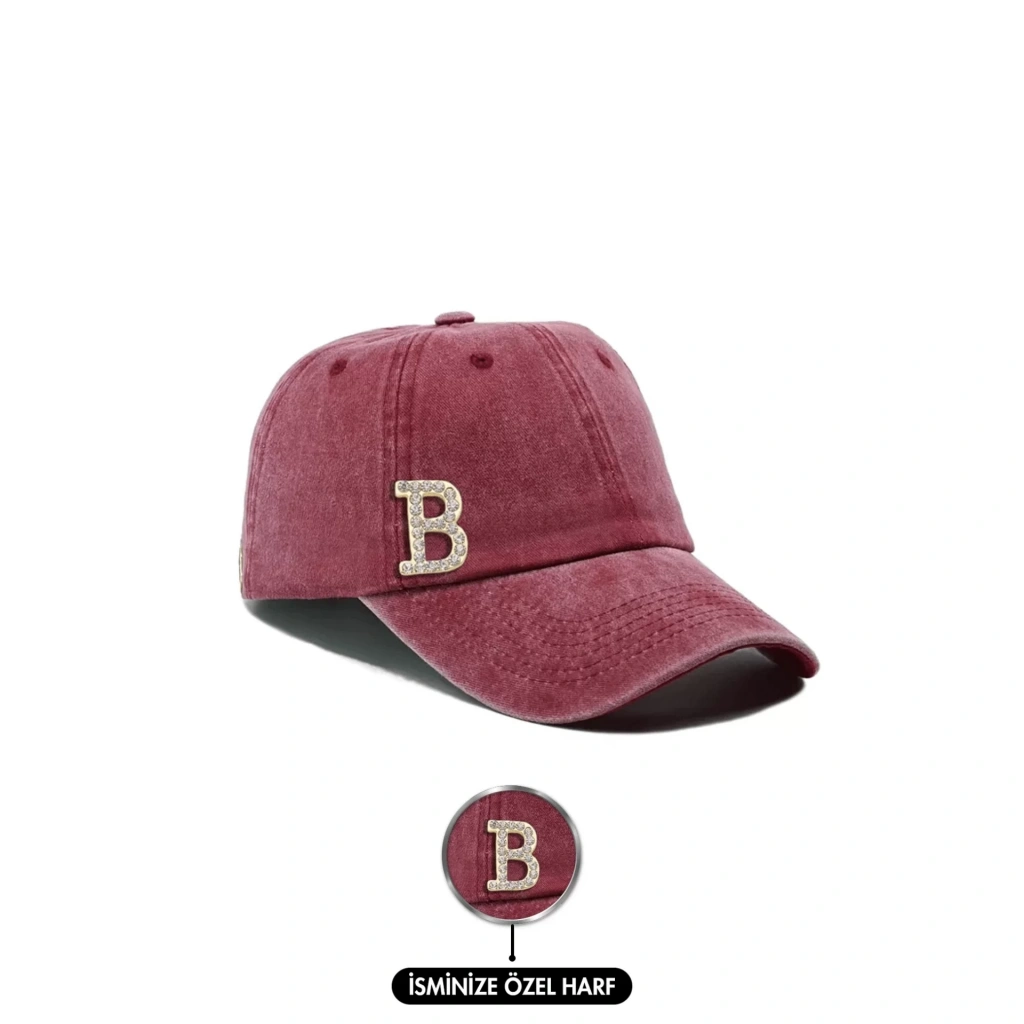 İsme Özel Yıkamalı Kep Şapka - AB01010 - Mürdüm