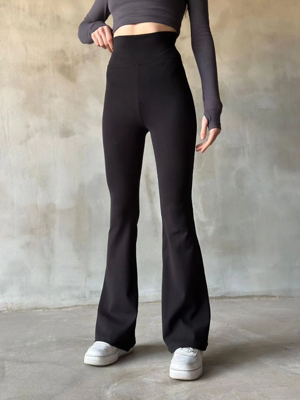 Kadın Yüksek Bel Toparlayıcı Likralı dalgıç Spor Tayt Esnek Rahat Kalıp - Füme