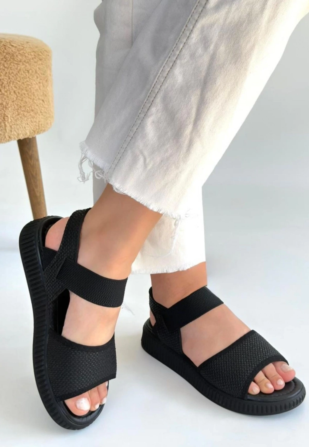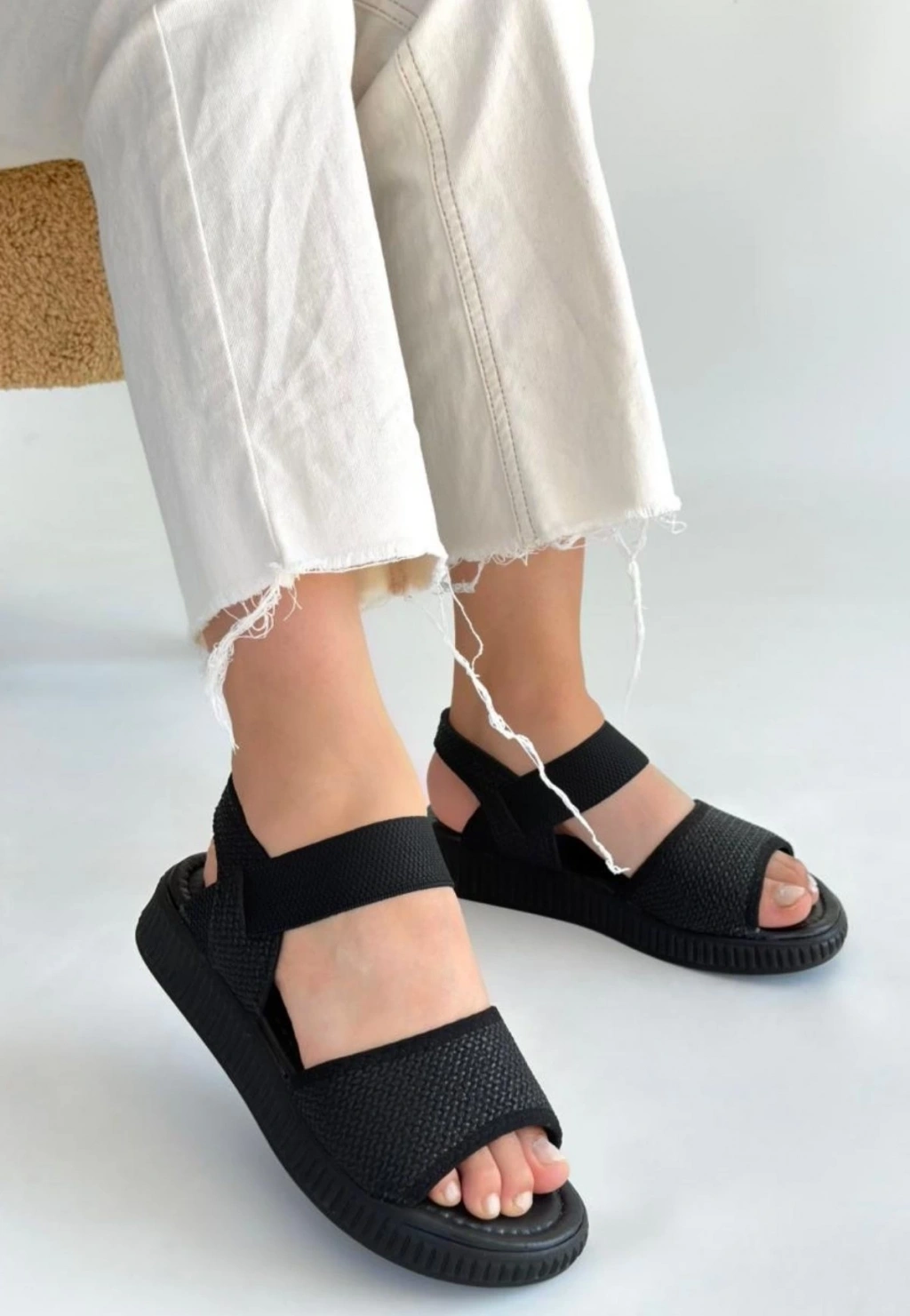 Wayi Siyah Hasır Cilt Sandalet