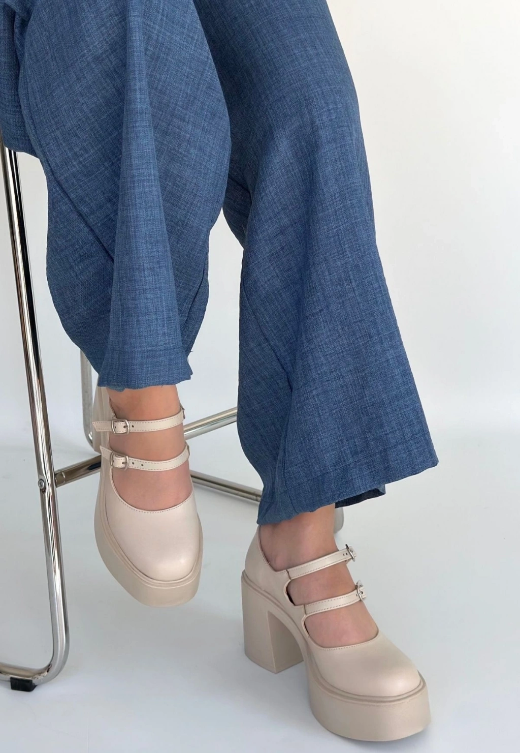 Nitya Bej Baskılı Rugan Topuklu Ayakkabı