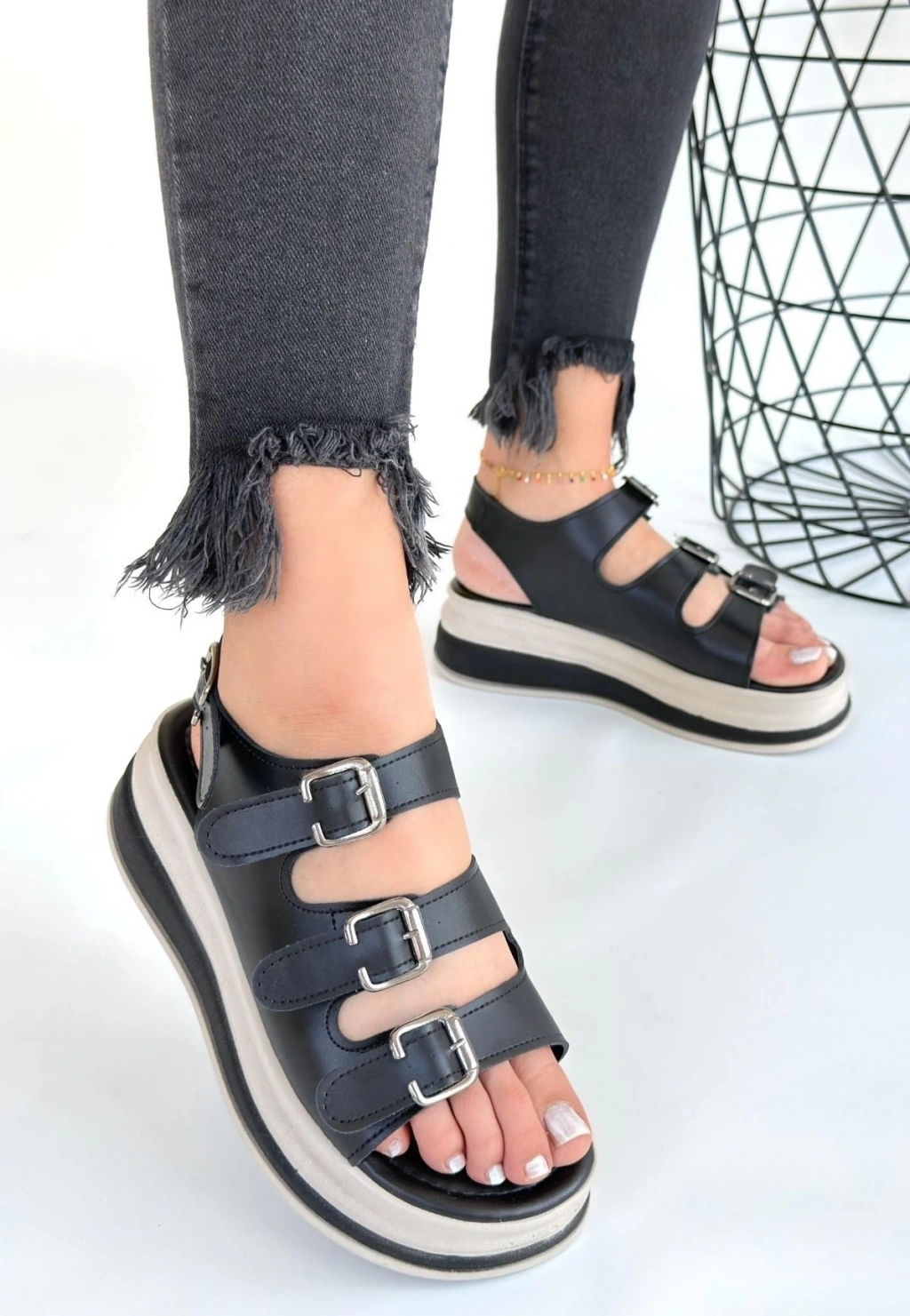 Saide Siyah Cilt Cırt Cırtlı Sandalet
