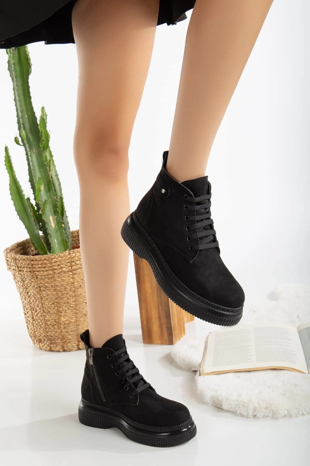 Denta Siyah Süet Topuklu Bot