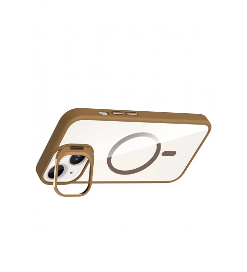Joko Apple iPhone 14 Remim Lensli Magsafe Standlı Kapak - Kahverengi