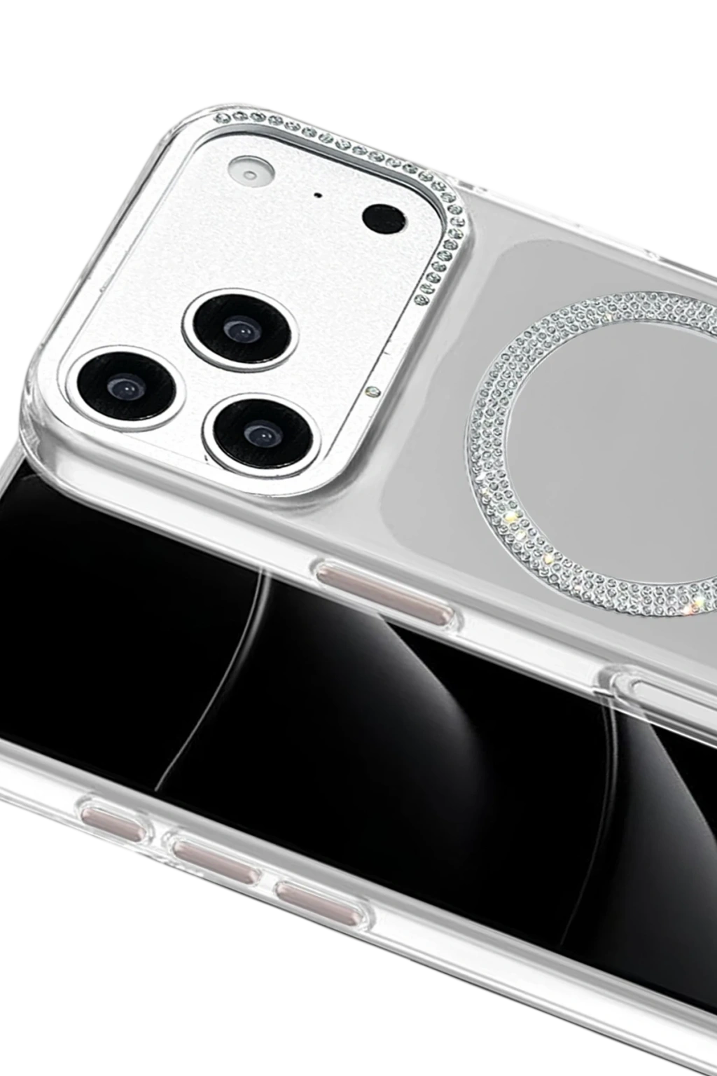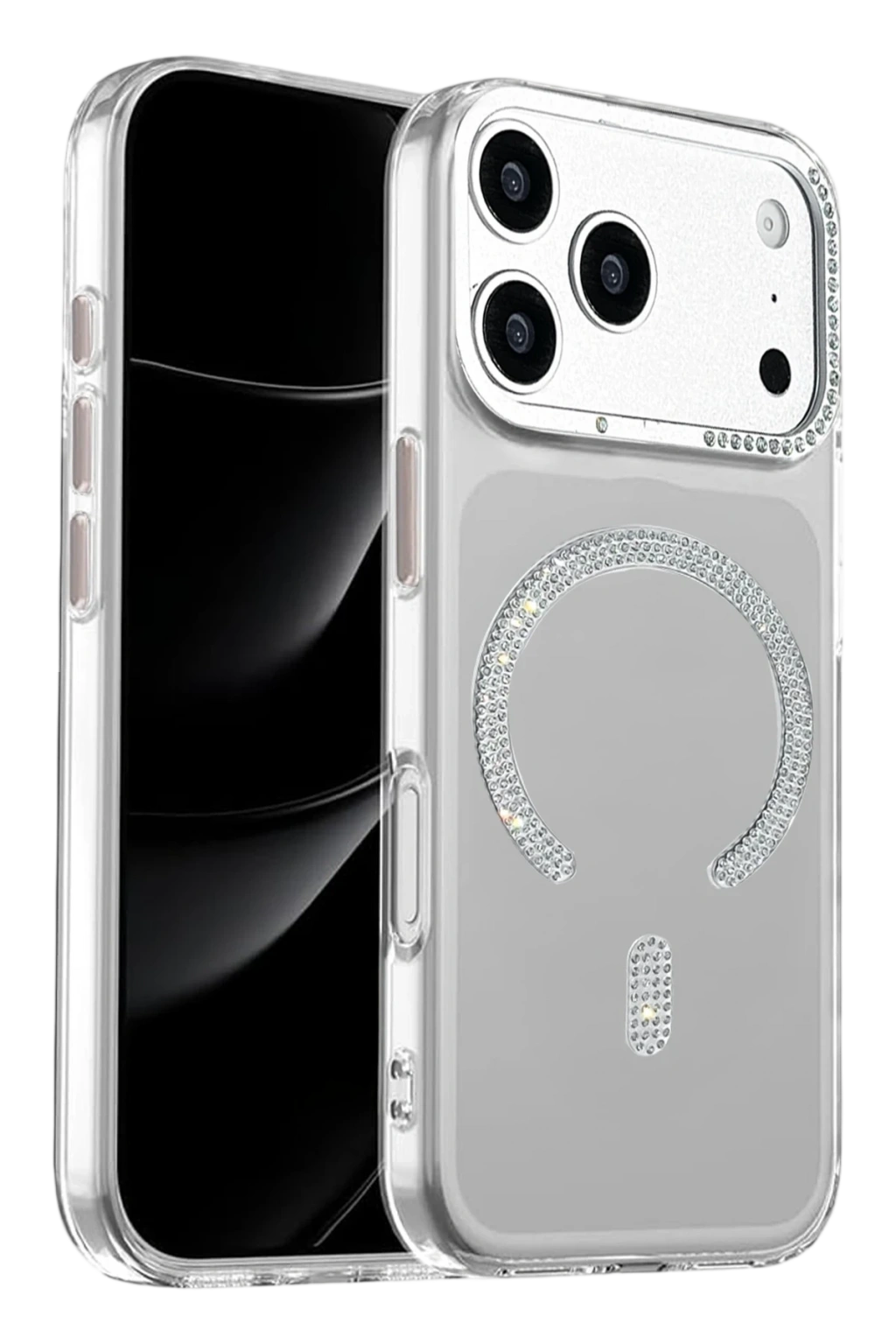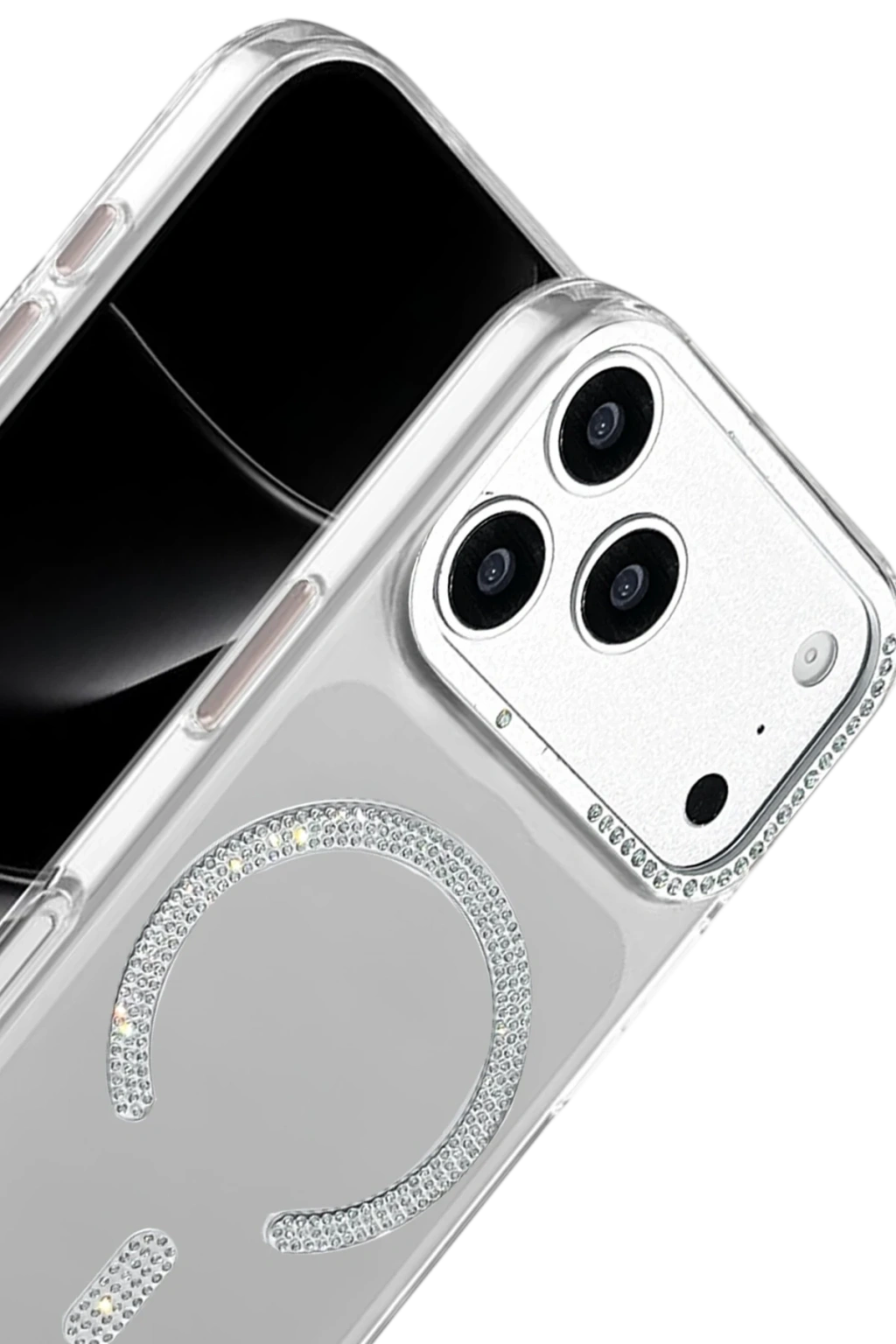 Parlak kristal taşlarla süslenmiş MagSafe halkası; manyetik şarj cihazları, standlar ve MagSafe aksesuarlarla güçlü ve stabil bir uyum sunar.