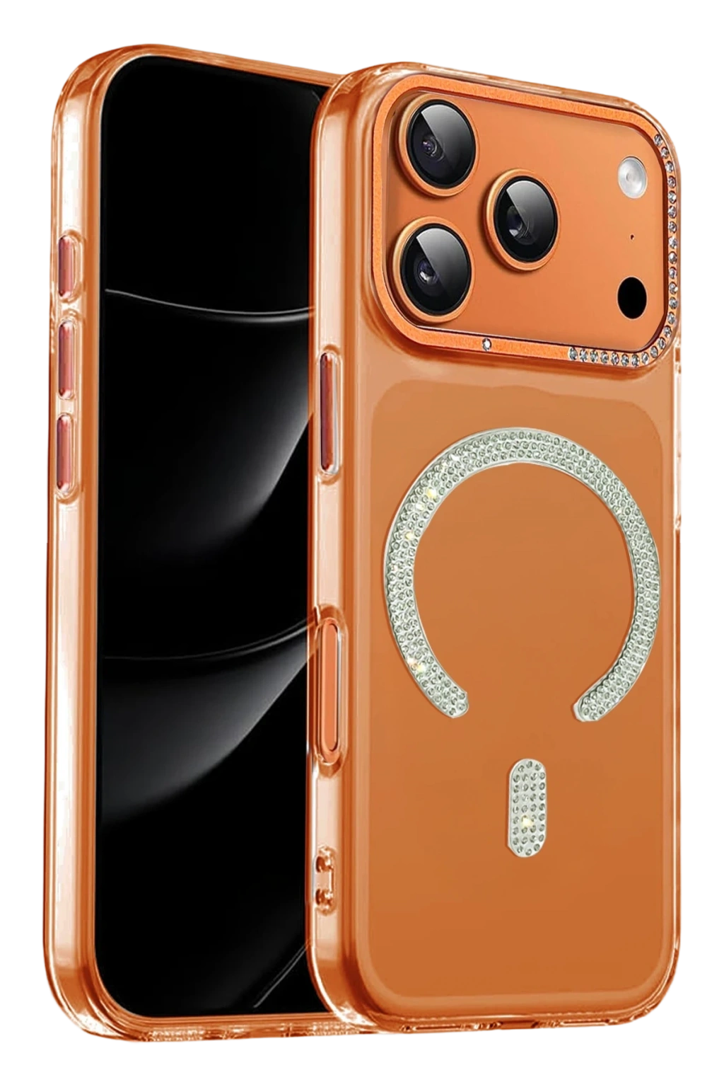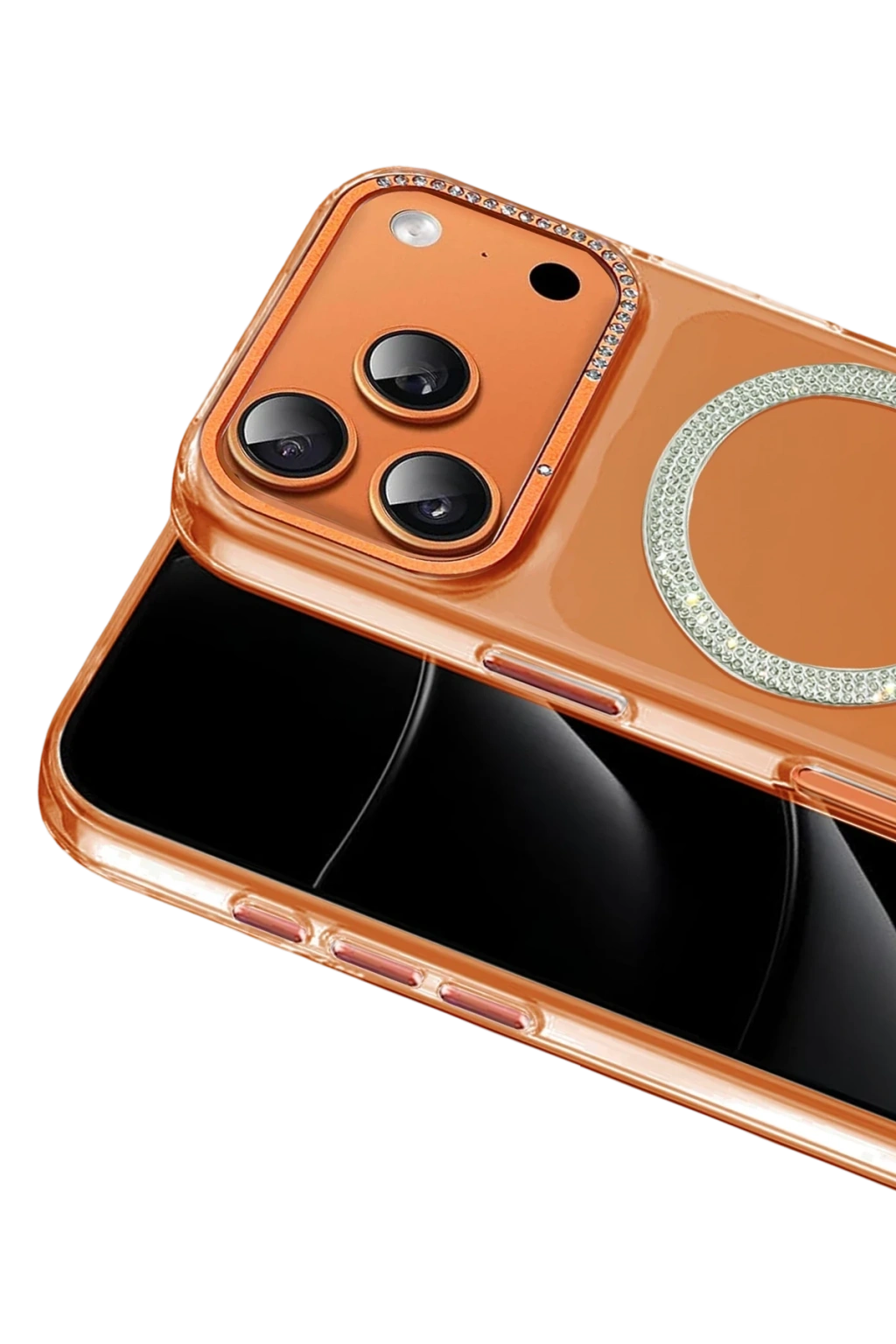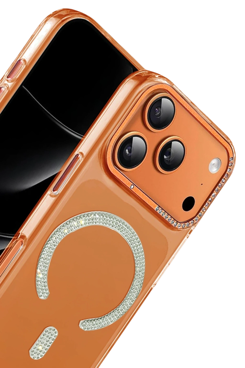 Parlak kristal taşlarla süslenmiş MagSafe halkası; manyetik şarj cihazları, standlar ve MagSafe aksesuarlarla güçlü ve stabil bir uyum sunar.