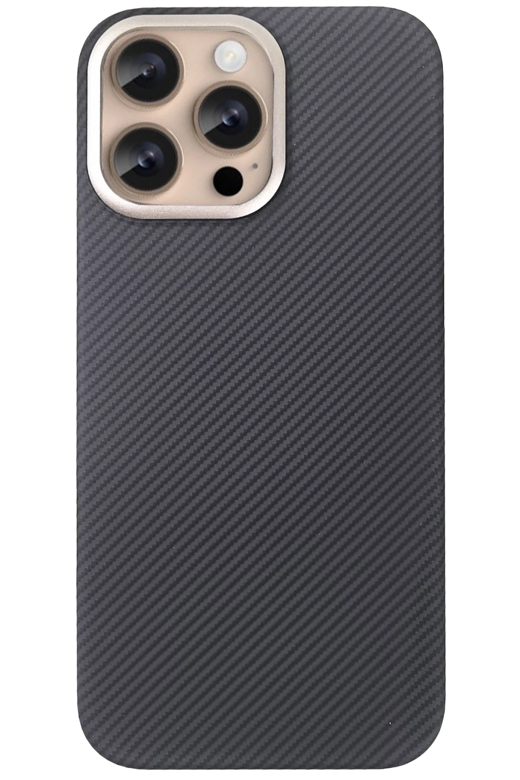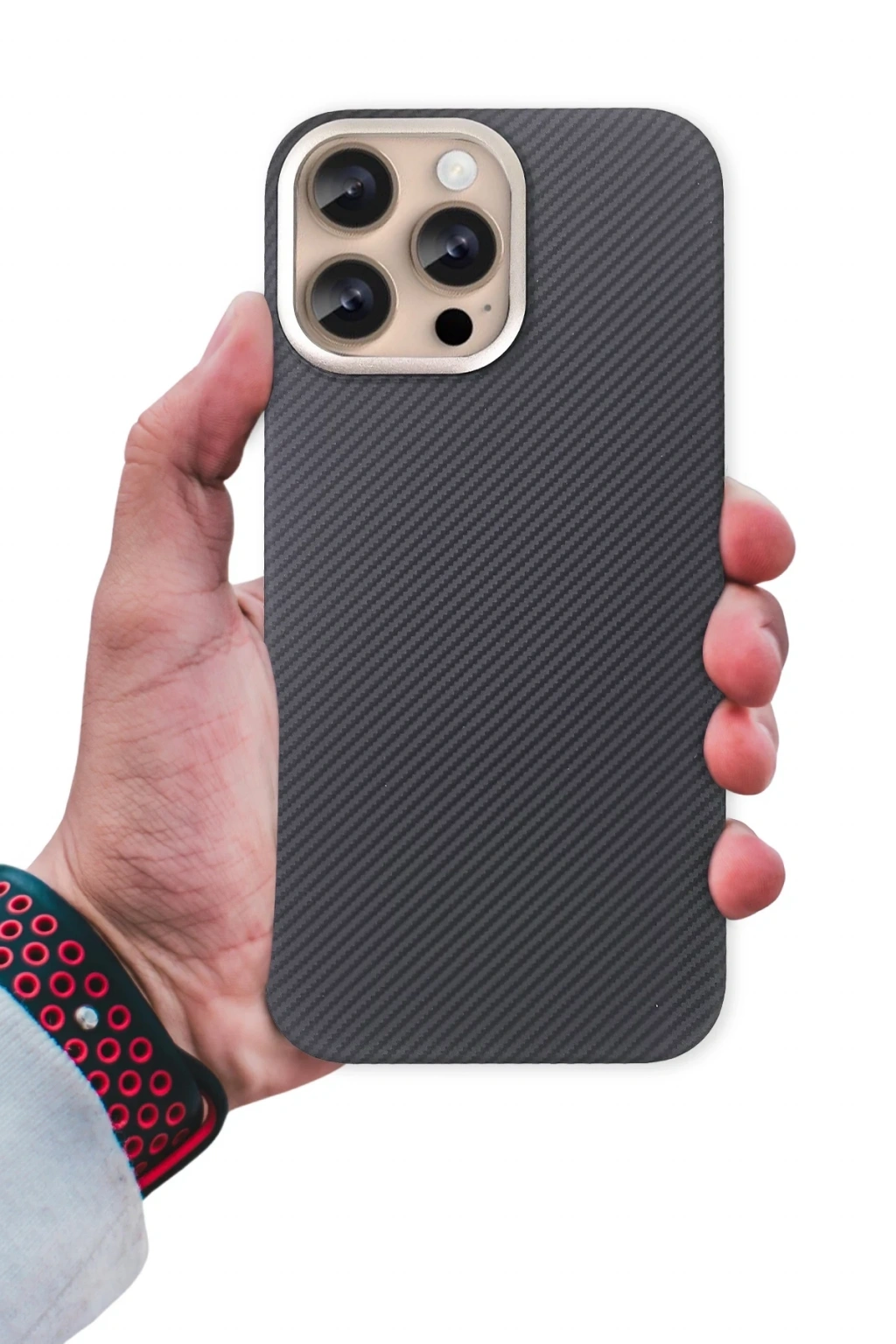 Sağlam, lüks ve hafif bir kılıftır sert plastik ve metal kamera çerçevesiyle tam koruma sağlar. Şık karbon fiber tasarımı modern bir görünüm sağlarken yerleşik MagSafe uyumluluğu da aksesuarların kolay şarj edilmesini ve bağlanmasını sağlar.