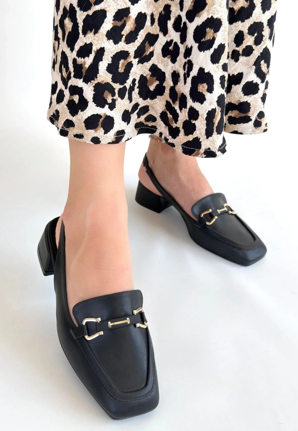 Jarlo Siyah Cilt Dolgu Topuk Ayakkabı