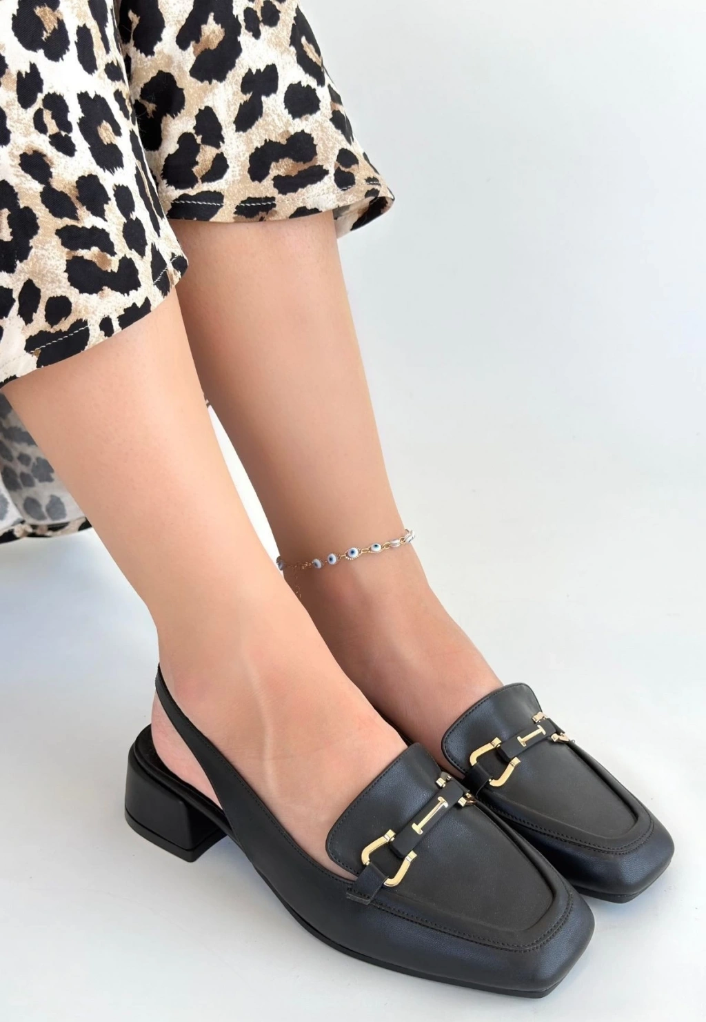 Merio Siyah Baskılı Rugan Topuklu Ayakkabı