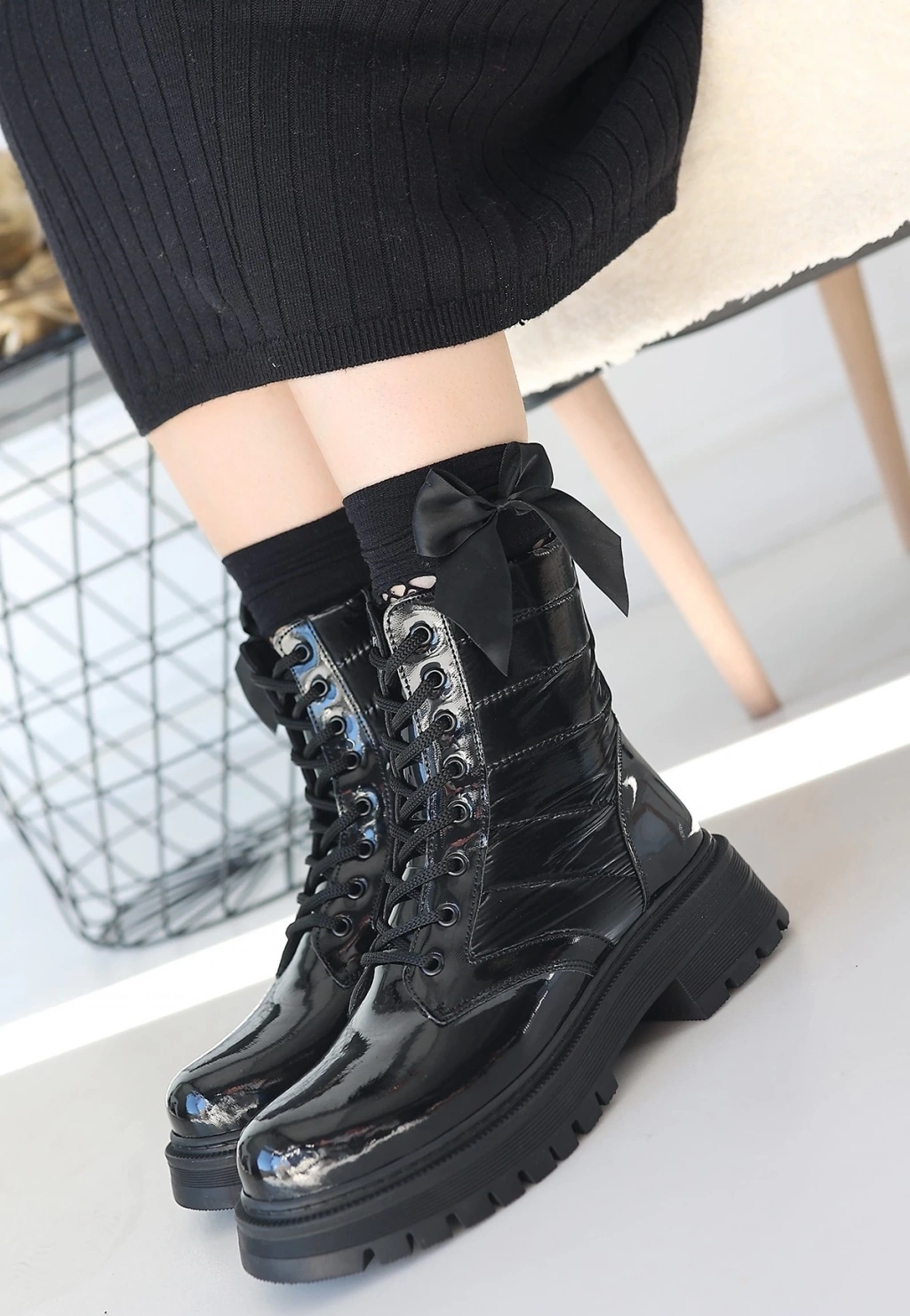 Jones Siyah Cilt Bağcıklı Topuklu Bot